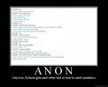 Barrett Brown | Darr | Eric Bauman | Jackal | Kirtaner | KYAnonymous | Magoo | moot | Neuro | r3x | Paul "Fetch" Carnes | Rfjason | Rorschach | Ryan | Sabu | Splongcat | Starkiller88 | The Gentleman | WBM | zaiger