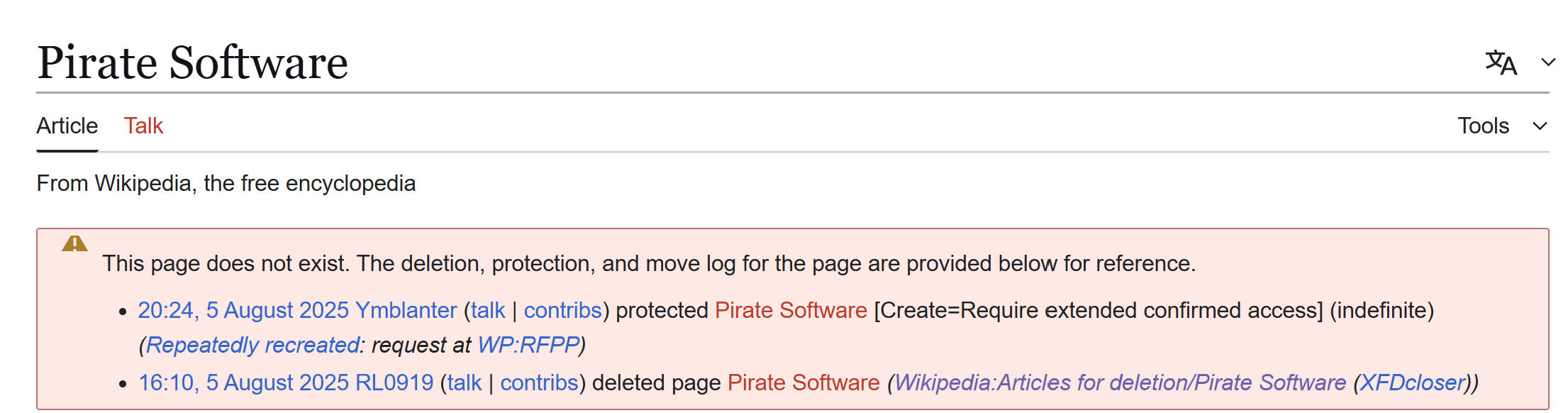 | 20:28, 5 August 2025 | PirateSoftware-wikipediaArticle6.png (file) | 132 KB | File uploaded with MsUpload | 1 | |
