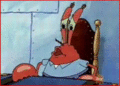 Eugene Krabs: SpongeBob's cheap-ass boss, a reject of a pirate, and a failure of a dad. He clearly got around since he has a daughter that's a whale. Now all he cares about is money.