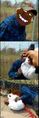 His neighbors were not remotely surprised regarding him going batshit crazy that afternoon. One person in particular, Tony Henderson, who lived across the street from Steve for decades, told some New York newspaper company that Steve was very up and down; possibly from borderline personality disorder, from what we can gather. He even participated in an act of animal abuse, as Henderson recalled that Steve hit his pet parakeet so hard that he thought that it had died. The bird slowly crawled from its cage to his finger when he just bitch-slapped it for no logical reason and it fell to the ground, smiling at Tony and laughing as he did so. He was also assumed to have tortured other pets that he had at the time. Local residents recall him as the "slimy" loser who lured women in with a pet python as a teenager, attempting to use it as a "bizarre" party trick. A next-door neighbor, Alexis Lee, recalled Steve hitting on her frequently at certain moments inside the casino he lost all his money in, like the certifiable dumbass he is who kept his phone on the whole time not realizing that it could be pinged by the towers. Think if Chris-Chan was a bald, tall black man and gun enthusiast with fully-grown facial hair, and still couldn't get a girlfriend despite being okay in the face and still overweight in everything else.