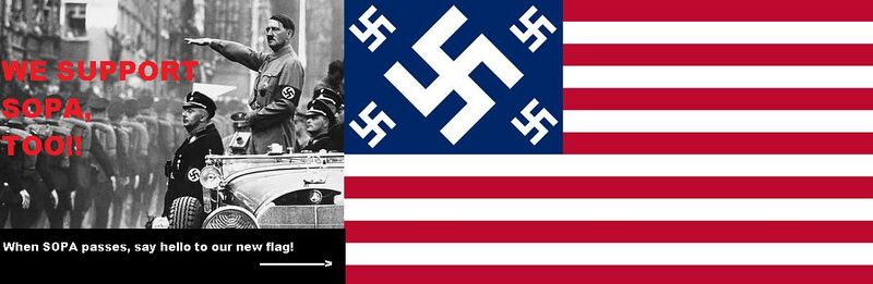 For almost 2 weeks, the Internet did not take notice of the demon lurking over the horizon. Then on November 16 of 2011, it collectivity shit its self as thousands of websites joined together to to voluntarily censor themselves to protest the bill. Termed "The First American Censorship Day" over 6,000 websites, including 4chan, Tumblr, Mozilla, Reddit and ED, along with thousands of other sites that normally could not give a fuck, voluntarily censored their logo with a link to a site where you could send an automated email to your representatives. The collective reaction was major fuck huge and old media began to take notice.