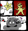 Same as SMRPG but every character is a fucking piece of paper. Bowser steals a Star Rod, gets sued by Kirby for copyright infringement, wins, and decides to use it for himself. Peach invites Mario and Luigi to a party at the castle, during which the whole castle rises up in the sky and Bowser pwns the shit out of Mario with his Star Rod. OMFG! So now Mario has to free some shit star spirits to re-own Bowser and his damn Star Rod, with the help of all his partners. He has several of these partners to help him out on his contrived quest, but they are hardly notable and very shitty. The series has also spawned two equally formulaic sequels of collecting seven shiny pieces of shit to kill somebody. Hoorays!