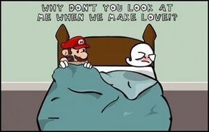 In 1990, the public was beginning to suspect Mario of being part of the furry community. Mario denied these claims when asked. These suspicions were brought on by the fact that Mario was seen dressing up like a raccoon. Mario stated that he wore this costume not because he was a furry, but because he liked being able to float around and get more coins. However, suspicions were further aroused when he was also caught dressing up like a tanuki and later, a frog. When asked, Mario just stated that he was sort of a furry, but only in that he was fascinated by those creatures and was not aroused by them at all. These rumors went away after a while, but then they were brought back and confirmed when an anonymous source noticed that Yoshi, the dinosaur that Mario rode around, wore shoes. A picture was then found of someone who followed Yoshi to his house and discovered that Yoshi was actually a fat furry dressing up like a dinosaur. Mario said that he didn't realize that he was riding another man, but eventually Peach came out and stated to the press that Mario really was a furry. Mario then cried and threatened to kill himself. After disappearing for many years, Mario returned to the public accepting that he was a furry. Mario has since been seen at many furry conventions dressed as a penguin with overalls. He has yet been banned from Deviantart 4 times.