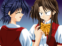 Amusingly, Kouji can be turned into a girl in the second and third game, and if that happens, he'll turn into Takuya's willing bitch. For bonus lulz, the second game even has an ending where both Takuya and Kouji are girls, and they decide to live happily ever after as rug munching post-op trannies.