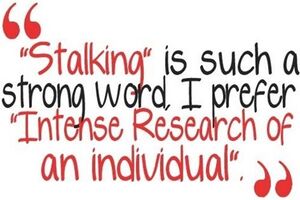 - Obsessive creeper that puts pictures of women he harasses on his walls.