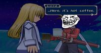 Because just about every other Lloyd/someone pairing is listed here, so this one might as well be too. Lloyd frequently cockblocks Genis when he tries to get in Presea's pants, but this is more because he's too stupid to realize what is going on than because he's jealous or trolling. The two can show some interest in each other, particularly if Presea's storyline is pursued, but it's arguable that this is anything beyond friendship. It's possible that Lloyd would show more interest in Presea if he realized she was really 28 and not a loli, but that remains to be seen. Also, if Presea actually has feelings for Lloyd, that technically makes her a cougar.