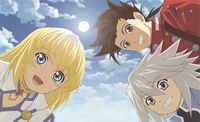 It should be noted that Tales of Symphonia is part of the Tales series, which consists of at least a dozen titles released for just about every gaming system of the last few generations. This is because Namco are huge money-whores who don't care much about their fans. Symphonia, along with most other Tales games, is subject to huge whore-marketing. For example, Symphonia alone has seven manga adaptions, two novel adaptions, four strategy guides, a character book, an official scenario book, an art book, seven drama CDs, a shitty 11-episode OVA series, and a crappy sequel (see below). The sequel and original game are also going to be re-released in HD for the PS3 (in both English and Japanese). Notably, Symphonia was the third Tales game to be released in English (the fifth in Japan), but no one gave a shit about the other ones because they weren't 3D and such.