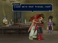 Only slightly less useless to the plot than Noishe. He's an artificial furry creature-thing that followers Sheena around. Kind of like a Pokémon, but it talks. So a Digimon. Sheena can summon him in battle, but he does fuck-all there. He also does fuck-all in the plot, aside from sacrificing himself for Sheena when Volt tries to kill her. OMG, drama! Then he gets reborn as a heart god for some reason, and rather than rejoin Sheena now that he might be of some actual use, just stays in one spot for the rest of the game.