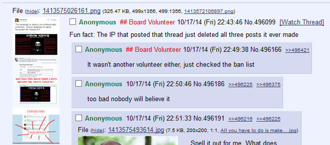 Here's the part where Anon claims responsibility: http://8archive.moe/gg/thread/159074/#164306