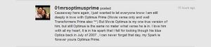 - It's any Optimus voiced by Peter Cullen. That's her thing now. Are you butthurt?