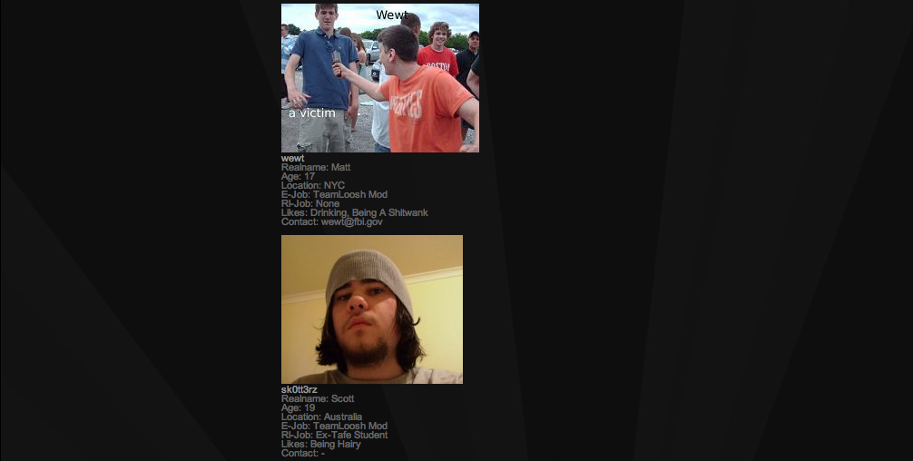 - (2007-12-15) [+ntrQlf] http://www.teamloosh.com/ we 0wn3d 4chan :O dont fucking tell ANYBODY