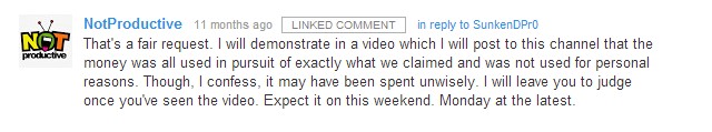 | Good News, Everyone! NotProductive is now a fully blown YouTube project, which it was originally planned to be anyway so all the money was completely wasted on this obvious scam. Anyone else smell a lawsuit? |
