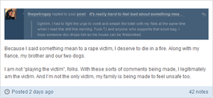 Protip: simply bringing up EncyclopediaDramatica or calling him fat won't suffice. Well, turns out both work just fine. The dude even believes in "thin privilege" which is ironic for some very obvious reasons.