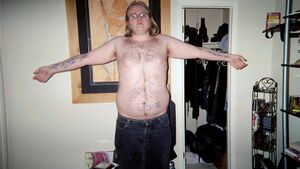 He is (apparently) 6'7 tall, and goddamned if he hasn't told you already. He is strangely proud of his height, mentioning it at any opportunity - often in a threatening way. However, TJ has never done a day of labour or workout in his life. In fact, he has admitted in the past that he can't come close to executing a push-up. Conveniently ignoring any law of physics not pertaining to sheer mass, he is hilariously unaware of cases where smaller foes defeat, sometimes easily, larger ones. One of many examples of that would be when a lone wolverine (no, not that Canadian mutant you dumbfuck) manages to rape a fully-grown Grizzly bear to death. Does fatfuck not realize that strength means nothing if your body doesn't know how to utilize it?