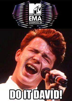 MTV, determined to please their target audience, put together a stunning display of faggotry and AIDS. Some argue, that apart from the chronically unfunny host, bland performers and the fact that all the awards were given to the wrong people, it was actually a pretty cool show. The Rick Astley fan base foresaw this faggotry and decided to offer MTV a lifeline in the form of an epic campaign to get Rick the Best Act Ever award; a campaign that resulted in over 900,000,000 votes for Astley. This is at least 100 times the total amount of all votes cast in the 2007 EMAs.