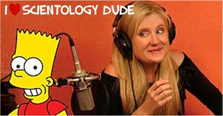 On January 28, 2009, Nancy Cartwright decided it would be a great idea to infringe copyrights and endanger her contract with Fox by calling up Los Angeles locals to promote a Scientology event by using the voice of Bart Simpson in hopes that it would draw in many young retards into her UFO cult. She used colloquialisms like "man!", "ay! carumba!" and laughing in the most retarded fashion imaginable. Like the brain damaged woman that she is, Nancy once donated her soul and personal savings to $cientology. Nancy makes nearly $17,000,000/year from talking into a mic and doesn't want Xenu to take her vocal chords. It happened to Isaac Hayes: It could happen to you.