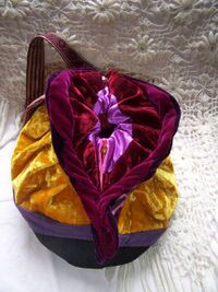 A Velvet V might become your everyday bag; it might always stay on your altar; or it might be acquired for special occasions. (One of the first Velvet Vs I made was part of the bridal trousseau of a close friend of mine.) Naturally, what you put in your Velvet V can have tremendous symbolic and magickal significance."