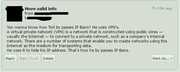 Tori has a reputation of frequently Ban-Evading on DeviantART, as he has over 666+ deviant shit accounts that were either BAWWLETED by the lazy administration or having his accounts constantly spammed to the help desk by the easily offended children that lurk on dA while jerking it to their Transgender-Autistic-Greysexual OCs. He became well known when he popped up in the mist of the Imma-The-Deer shitstorm, and has been around ever since, causing pain to those OH-SO-POOR special snowflakes and retards alike.
