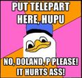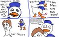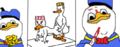 Uncle Dolan comics involve a hideously mutilated Donald Duck drawn in MS Paint. Also spelled Dolane, Doland or Uncle Dolan, the meme usually involves Dolan wielding an axe, talking to that fucking retard Goofy, (who would later become a sub-meme called Gooby pls), screwing over Scrooge, raping his nephews, or jerking off into beverages, which he lovingly supplies to his family. As everyone knows, this is genuine care and love as everybody loves Dolan's juice. Never piss off Uncle Dolan. All in all, everything went better than exception.