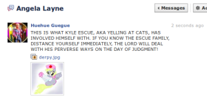 On November 29th Cats received a message from a fan of his on facebook named Collin, asking him for advice on how to become a decent brony musician. The message actually read, "How do I become popler like you" which would be enough for most people to come to the conclusion that the person they're dealing with is possibly autistic. But not Cats, no sir. Rather than use this as a perfect opportunity to prove how much he had changed over the past few months, he sank to a whole new level of low even for the internet's standards. After posting on /mlp/ (it's his home you know) about how he hates having to put up with this shit every day, he then invited the willing autistic kid into a Skype conversation that he broadcasted for all of /mlp/ via his livestream.