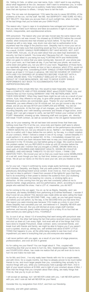 But the lolercoaster was just getting started. Due to his amazing rap skills, Cats was invited to perform at a Brony Convention called Everfree Northwest. The question was would his ability to create drama and unpleasantness everywhere he went on the internet follow him in real life? Yes, yes it did.