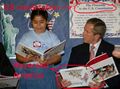 It was hard, mighty hard, durned hard, plumb hard, but Dubya practicized almost every day. She finally learned how to read. She memorized the names of a few important countries. She memorized the names of a few important U.S. states. One day, she was finally able to memorize the slogans that she was writing at least 100 times a day on the blackboard - the slogans that would put her in complete control! "Compassionate Conservative," and "I'm a uniter, not a divider!" Of course all sons of CIA agents are compassionate. They're real compassionate when they kill or torture you.