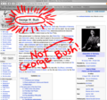 On the other hand, George W. Bush's epic failure can be used to generate at least 1.21 gigalulz of comedy at the expense of all of the bandwagon politic 16 year old girls on the Internet who write, "OMG BUSH IS HITLOR!!!!!!". The good thing is that using Bush to troll is not very difficult to do: her administration has pissed so many people off that the net is ripe with communities just waiting for you to join and talk about how much she's benefited the American people and the world as a whole. Don't forget to tell everyone how George saved us from the terrorists, mention 9/11 over 9,000 times (lol Giuliani), and let them know how excited you are that Bush has decided to run for re-election again in 2008. Because for all you, they, or the rest of the world knows about the American Constitution, it could be true.