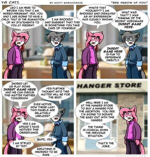 A typical Type E update consists of the author apologizing for not updating because RL has been sooooooo hard lately and also begging for a life. In the case of VG Cats, the author/illustrator Scott Ramsoomair bitches and BAWWWs about how many animu fanmails he has to go through instead of updating on time. This is, of course, merely a cover for his true reason for not posting a comic on time. Feel obliged to visit his JewTube page. While you're there, don't help but notice what a typical loser he actually is for jumping on the Weeaboo trend bandwagon that is Caramelldansen.