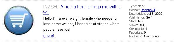 WishUponAHero.com is the poor man's Craigslist. Instead of people paying for the things they want, like on Craigslist, on WishUponAHero.com people post what they want, and expect to get these things for free. The person that provides the free thing to the e-beggar is from then on called a "hero".