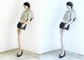 Moar photoshopped nudez, from her old Tumblr. Note the shifting belly button, and her waist and breasts changing in size/shape. Full size/speed here. [1]