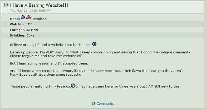 - Make a big BAAAAWWWful journal, defending herself and insulting those that critique her.