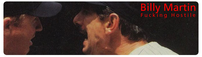 Billy Martin was a well know drunk who did not have a [[Midget|large physical stature.]]  Because of this, many people thought it was wise to approach the man, while he was drinking, and attempt to [[Some argue|explain to him the finer intricacies of baseball.]]  This tactic, often attempted in bars, would frequently lead to somebody [[Rape|being put in the hospital,]] somebody being charged with [[Almost raped|assault,]] and Billy Martin being fired the next day by [[Fat|George Steinbrenner.]]  Billy was an excellent fighter who delighted in [[1guy1jar|shoving a beer glass]] into the ass of anybody who questioned his coaching style.  While he was fighting he had an overall record of 14-0 with several knockouts and a few broken arms.  He was so feared by fellow bar denizens, he was asked to host [[1guy1jar|Wrestlemania]] in 1985.