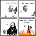 {{quote|Many of us like to ask ourselves, 'What would I do if I was alive during [[slavery]]? Or the [[Racism|Jim Crow South]]? Or [[apartheid]]? What would I do if my country was committing [[genocide]]?' The answer is, you're doing [[nothing|it]]. Right now.|Aaron being [[deep thinker|deep]]}} | |||