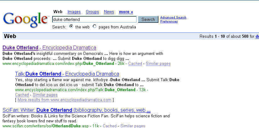 Note: this is an article about an Encyclopedia Dramatica vandal. For more information, please see the appropriate user page. To flame this user, please visit User_talk:Dukeotterland.