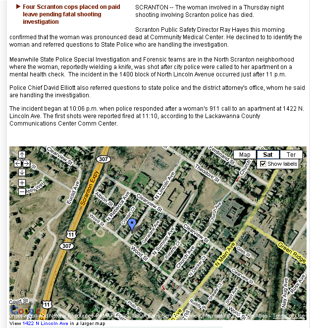 Upon hearing the news that a black woman was shot in his city, Scranton PD Chief David Elliot who can be reached via telephone at (570) 348-4130 (Hey, it's public information!) went apeshit and snorted two tons of heroin to calm down. After he was able to squeeze out a few loads into Celine Dion's face, Elliot held a press conference where he informed the public that: