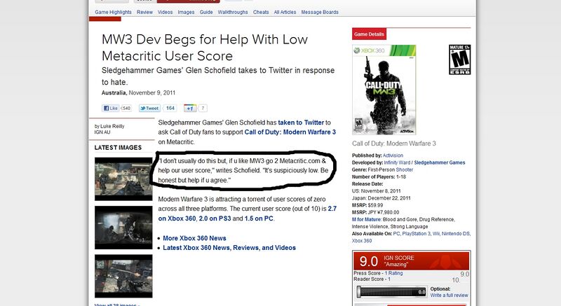 - Point out that the MW3 got good reviews because activision pays people like IGN to give it good reviews.
