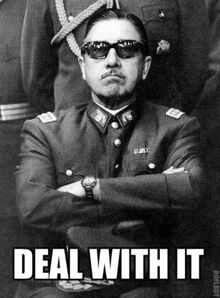 Augusto Pinochet is Hitler's second reincarnation (Electric Boogaloo), he was a high militar rank ChileanSpic, who was a Dictator from 1973 to 1988, and killed over 9000 commies purely for the lulz. Most of Chile's rich families loved him, since rich and beautiful people know what is good, but the poor socialists are all leftards and made big drama when the pinochetists changed "dictatorship" to "Militar Goverment" in 6 Graders History Textbooks.